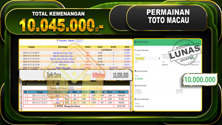 Bukti JP TOGEL SYDNEY – Selamat Kepada User ID : Yanxxx atas kemenangan TOGEL SYDNEY Dengan Nominal Sebesar Rp 10.000.000,- . Yang pasti nya langsung LUNAS Sesuai Bukti. Kemenangan Berapapun Situs DoraHoki Akan Membayar Lunas ya Kami mengucapkan Terima Kasih telah mempercayakan DORAHOKI sebagai Bandar Online pilihan dalam bermain judi online. Semoga bosku bisa tetap…