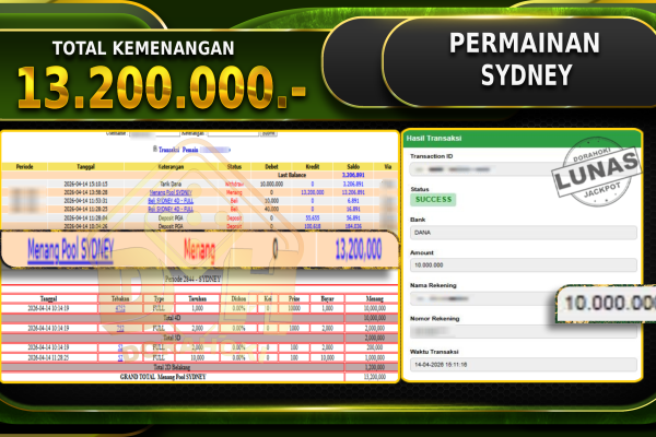 Bukti JP TOGEL SYDNEY – Selamat Kepada User ID : Wawxxx atas kemenangan TOGEL SYDNEY Dengan Nominal Sebesar Rp 13.200.000,- . Yang pasti nya langsung LUNAS Sesuai Bukti. Kemenangan Berapapun Situs DoraHoki Akan Membayar Lunas ya Kami mengucapkan Terima Kasih telah mempercayakan DORAHOKI sebagai Bandar Online pilihan dalam bermain judi online. Semoga bosku bisa tetap…