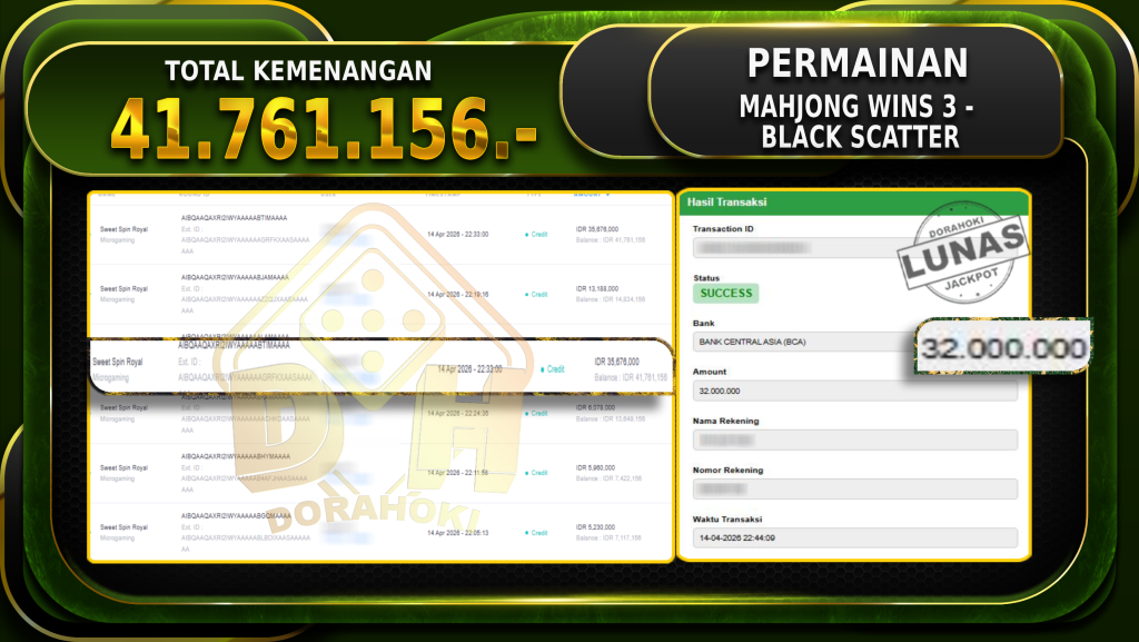 Bukti JP MAHJONG WINS 3 BLACK SCATTER – Selamat Kepada User ID : Jitxxx atas kemenangan MAHJONG WINS 3 BLACK SCATTER Dengan Nominal Sebesar Rp.74.515.429,- . Yang pasti nya langsung LUNAS Sesuai Bukti. Kemenangan Berapapun Situs DoraHoki Akan Membayar Lunas ya