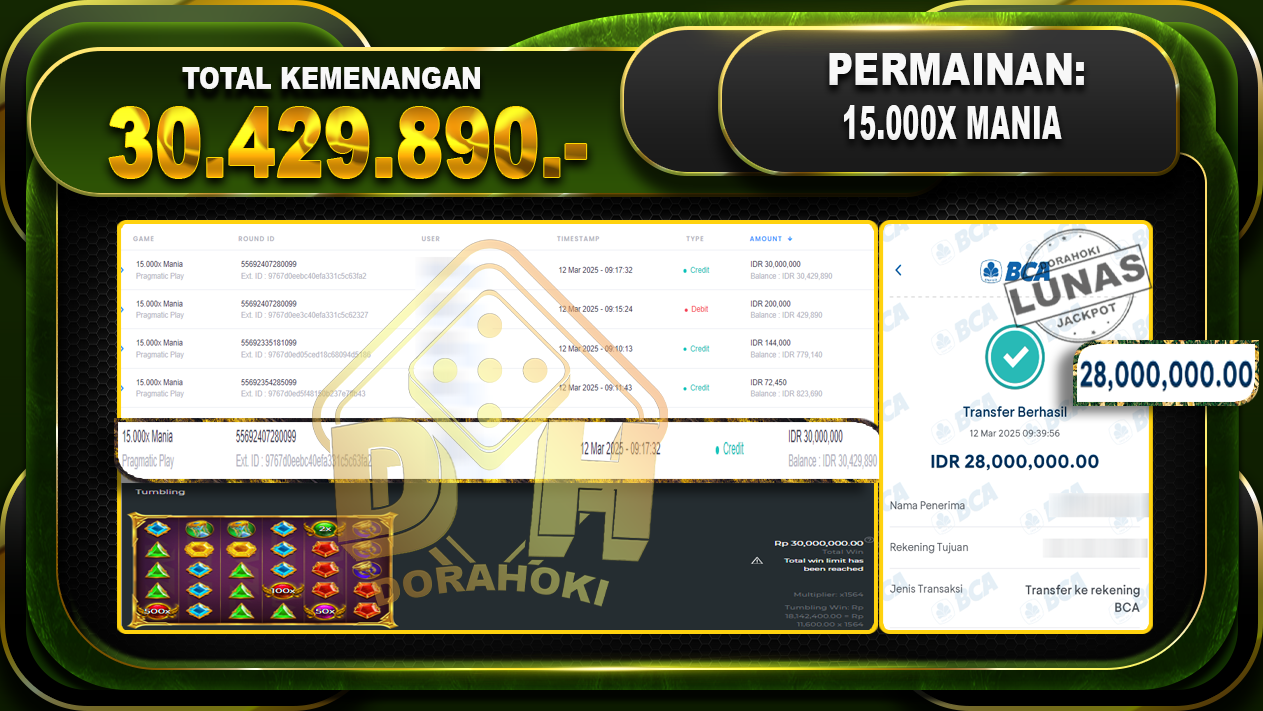 Bukti JP 15.000x Mania – ucapkan selamat kepada user id Mahxxx atas kemenangan di 15.000x Mania dengan total kemenangan Rp.30.429.890,- . Yang pasti nya langsung LUNAS sesuai bukti ya bosku. Dorahoki nih bosku berapapun akan tetap kami bayar lunas ya bosku.