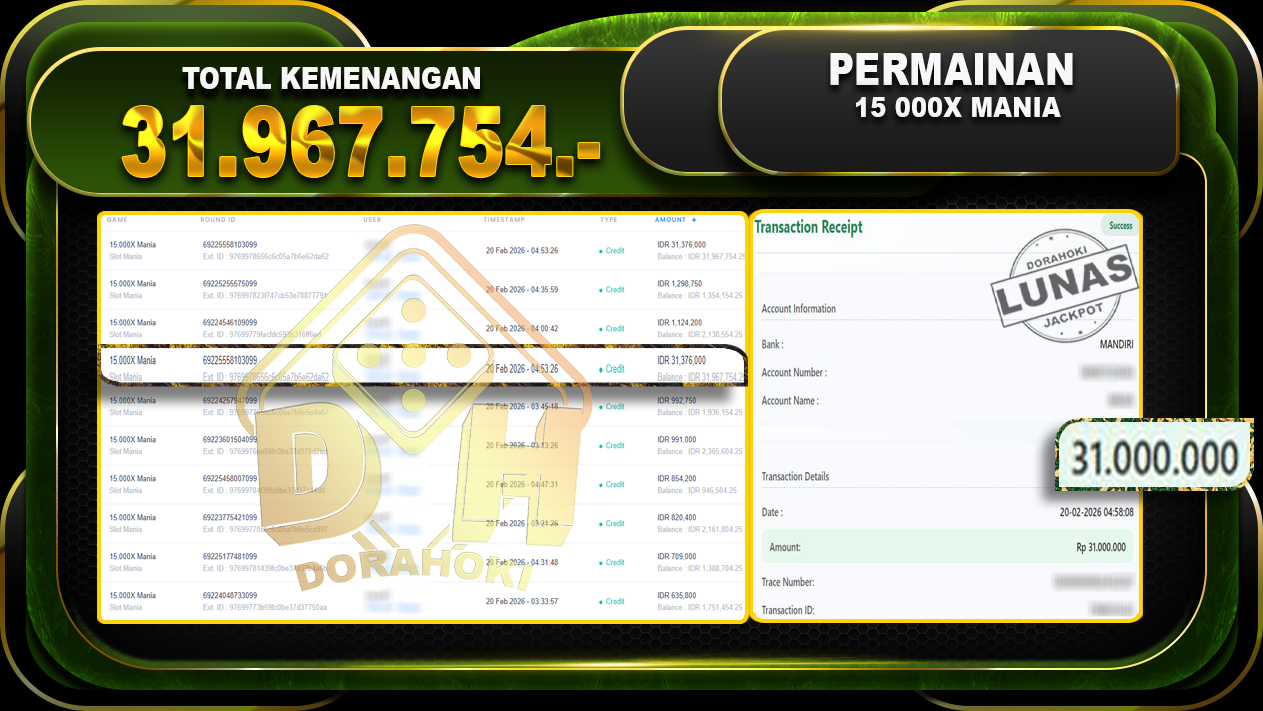15.000X Mania – DORAHOKI 20 Februari 2026
