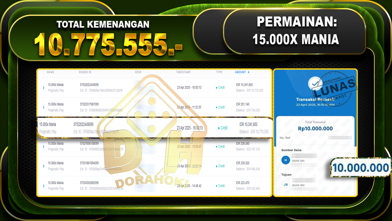 Bukti JP 15.000x Mania – Yang kami berikan ini sah dan real tanpa di rekayasa bosku dan hanya bertujuan untuk meningkatkan kepercayaan member kami dan memberikan kenyamanan saat bermain jadi bosku tidak perlu khawatir MENANG BERAPAPUN PASTI KAMI BAYAR LUNAS!!