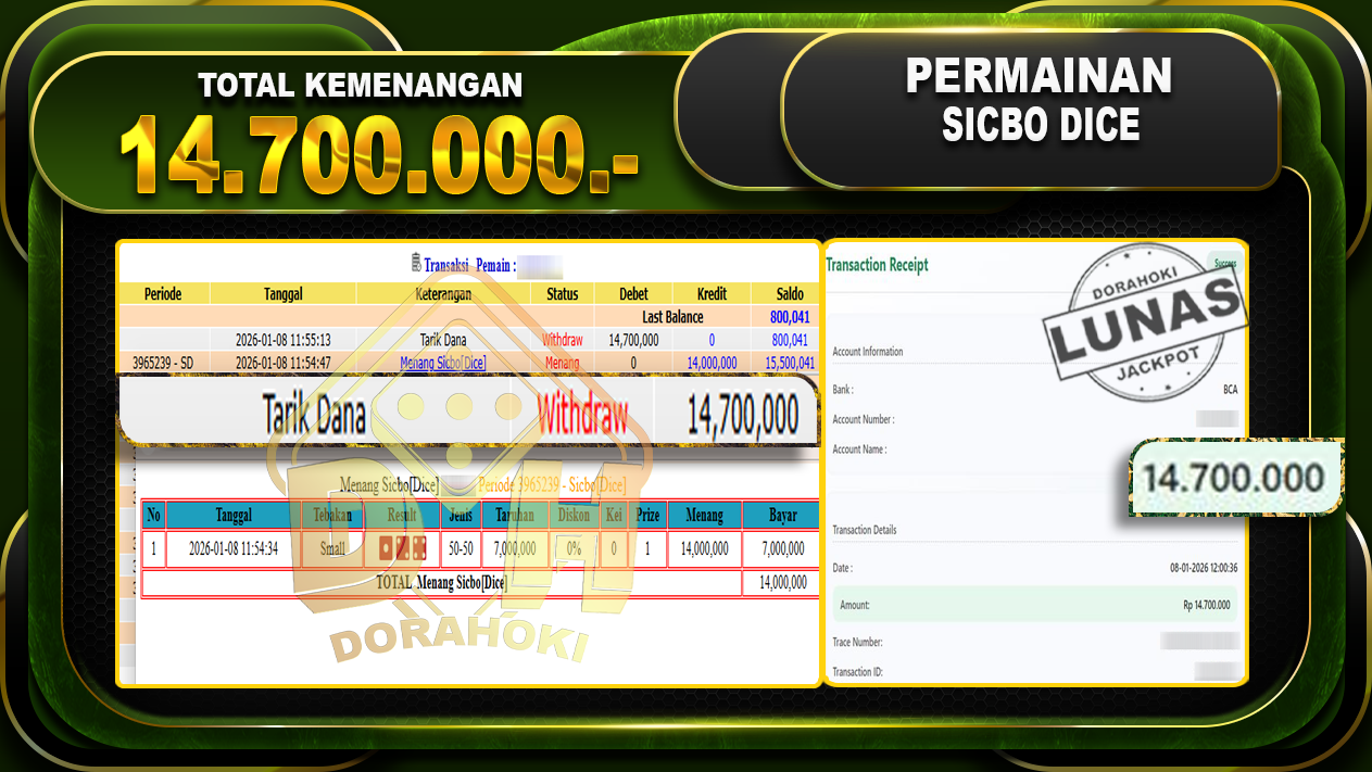Kami mengucapkan Terima Kasih telah mempercayakan DORAHOKI sebagai Bandar Online pilihan dalam bermain judi online. Semoga bosku bisa tetap bermain dengan nyaman ya bosku di Bandar Online kami ini ya bosku. Jika ada kendala bisa langsung hubungi CS kami di livechat dan WA yang online 24 jam tanpa libur ya bosku. Semoga kedepannya bosku bisa JP lebih banyak lagi dan tentu saja tidak perlu khawatir untuk pembayaran. DORAHOKI merupakan Bandar Online yg Aman dan Terpercaya JackPot berapapun pasti akan kami bayarkan langsung LUNAS ya bosku.