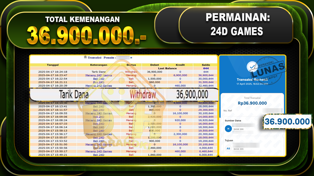 Bukti JP 24D SPIN – Yang kami berikan ini sah dan real tanpa di rekayasa bosku dan hanya bertujuan untuk meningkatkan kepercayaan member kami dan memberikan kenyamanan saat bermain jadi bosku tidak perlu khawatir MENANG BERAPAPUN PASTI KAMI BAYAR LUNAS!!