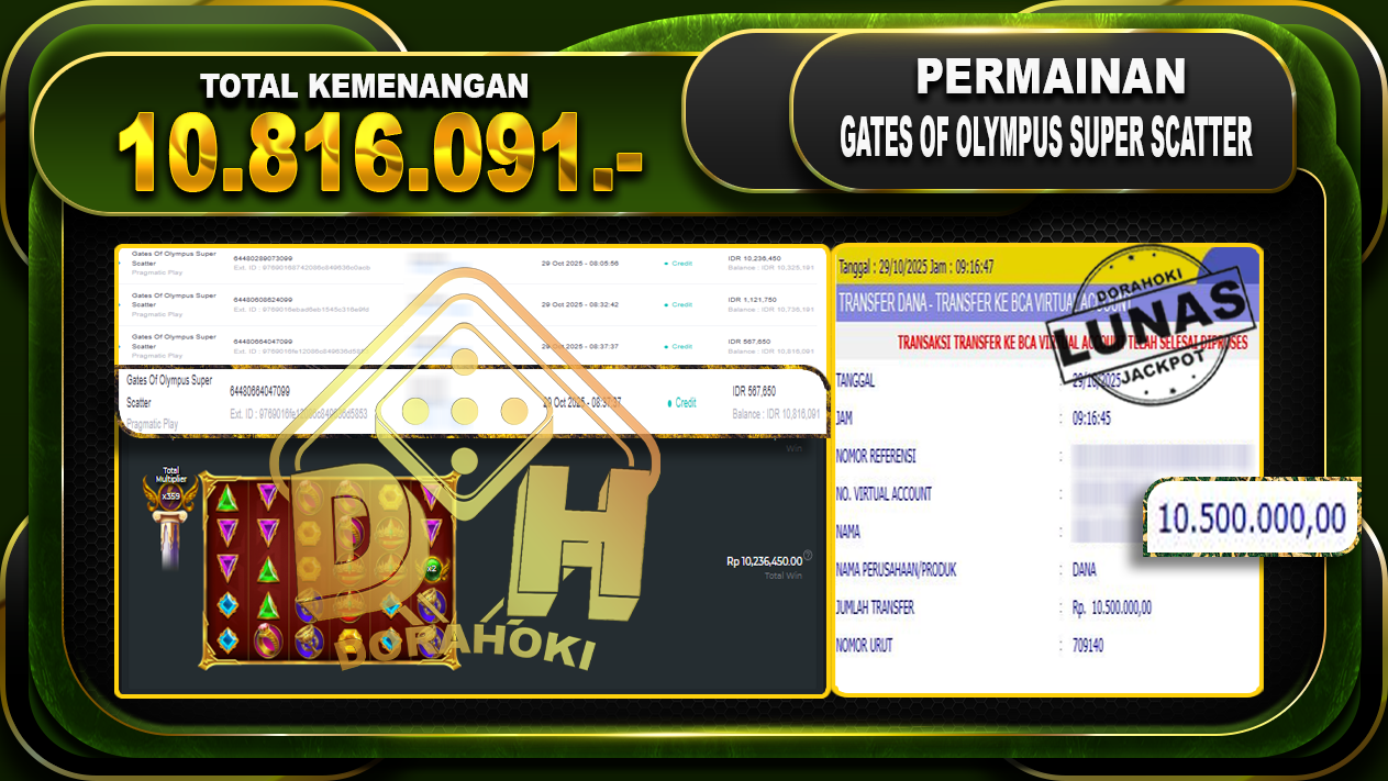 Bukti JP Gates Of Olympus Super Scatter – ucapkan selamat kepada user id talxxxxxxx atas kemenangan di Gates Of Olympus Super Scatter dengan total kemenangan Rp.10.816.091,- Yang pasti nya langsung LUNAS sesuai bukti ya bosku. Dorahoki nih bosku berapapun akan tetap kami bayar lunas ya bosku