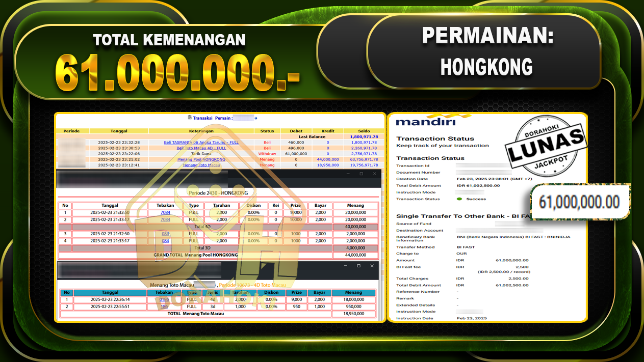 DORAHOKI NIH BOSKU! MENANG BERAPAPUN PASTI KAMI BAYAR LUNAS!!
