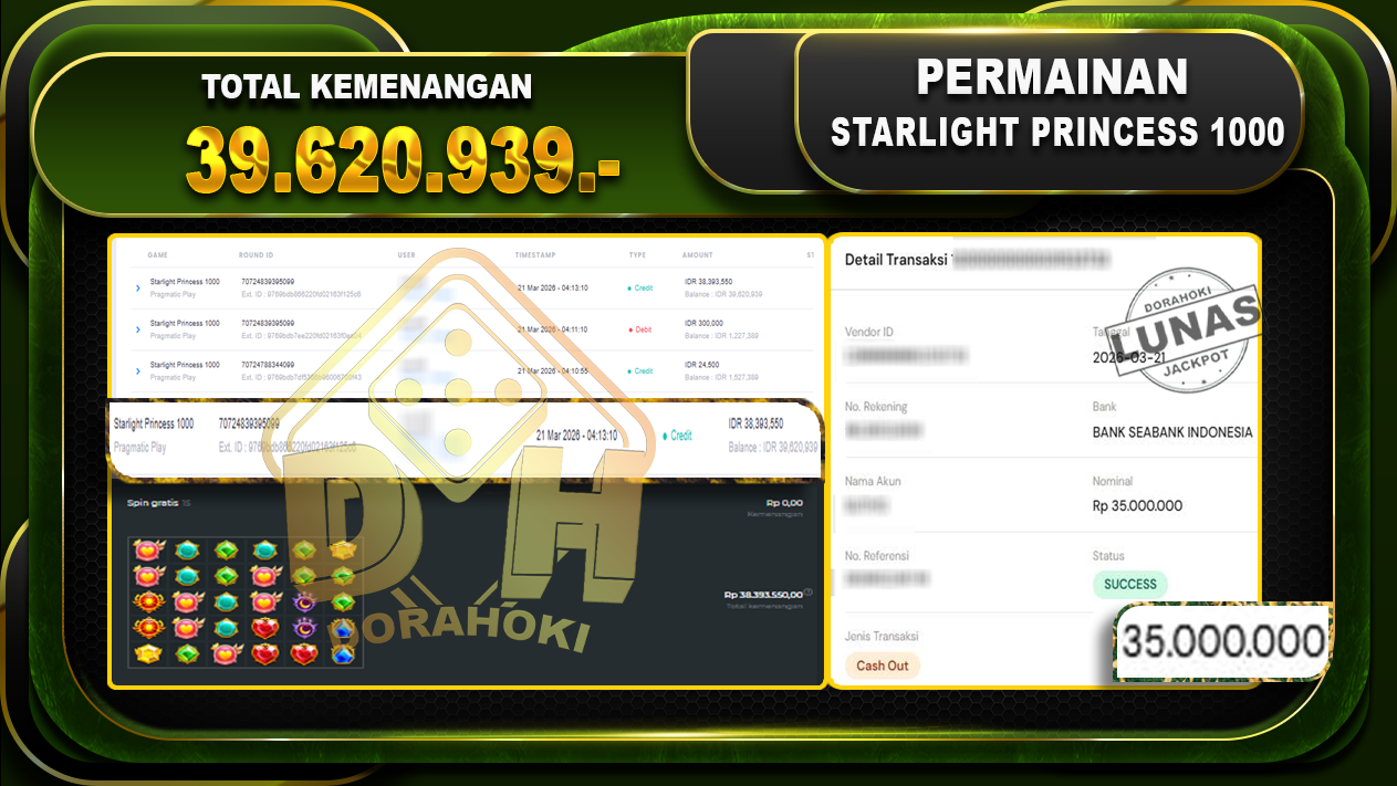 Bukti JP Starlight Princess 1000 – Selamat Kepada User ID : Sutxxxx atas kemenangan Starlight Princess 1000 Dengan Nominal Sebesar Rp.39.620.939,- Yang pasti nya langsung LUNAS Sesuai Bukti.