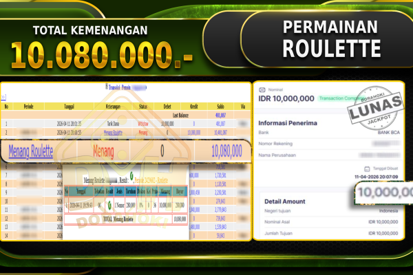 Bukti JP ROULETTE – ucapkan selamat kepada user id  Banxxxx atas kemenangan di  ROULETTE  dengan total kemenangan Rp.10.080.000,- . Yang pasti nya langsung LUNAS sesuai bukti ya bosku. Kemenangan Berapapun Situs DoraHoki Akan Membayar Lunas yah Kami mengucapkan Terima Kasih telah mempercayakan DORAHOKI sebagai Bandar Online pilihan dalam bermain judi online. Semoga bosku bisa tetap bermain…