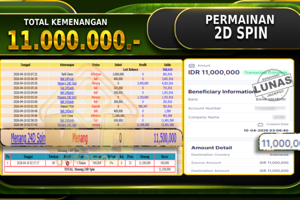 Bukti JP Livegames 24D Spin – ucapkan selamat kepada user id Wikxxxxx atas kemenangan di Livegames 24D Spin dengan total kemenangan Rp.11.000.000,- . Yang pasti nya langsung LUNAS Sesuai Bukti. Kemenangan Berapapun Situs DoraHoki Akan Membayar Lunas ya Kami mengucapkan Terima Kasih telah mempercayakan DORAHOKI sebagai Bandar Online pilihan dalam bermain judi online. Semoga bosku bisa tetap…