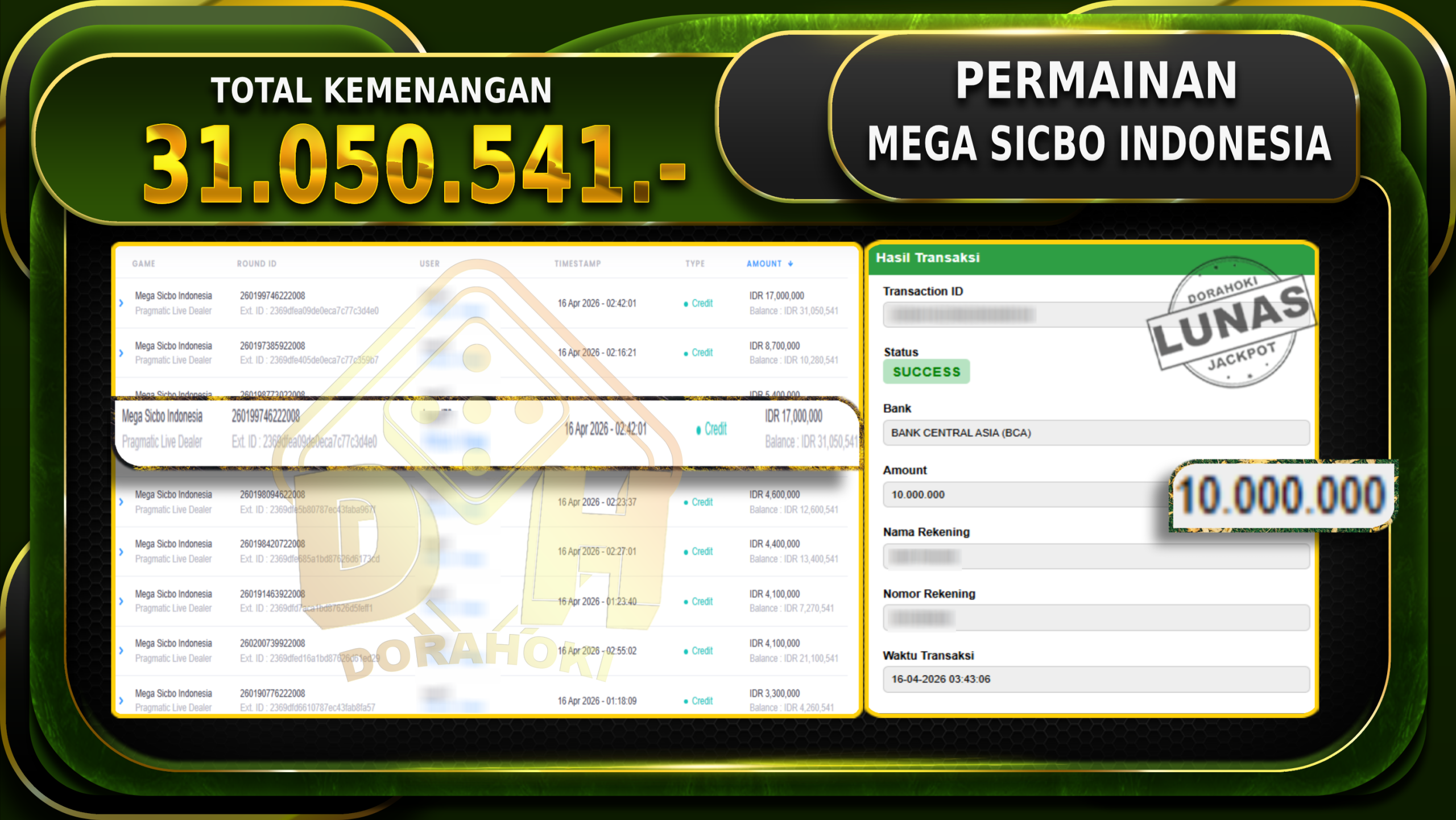 DORAHOKI NIH BOSKU! MENANG BERAPAPUN PASTI KAMI BAYAR LUNAS!!