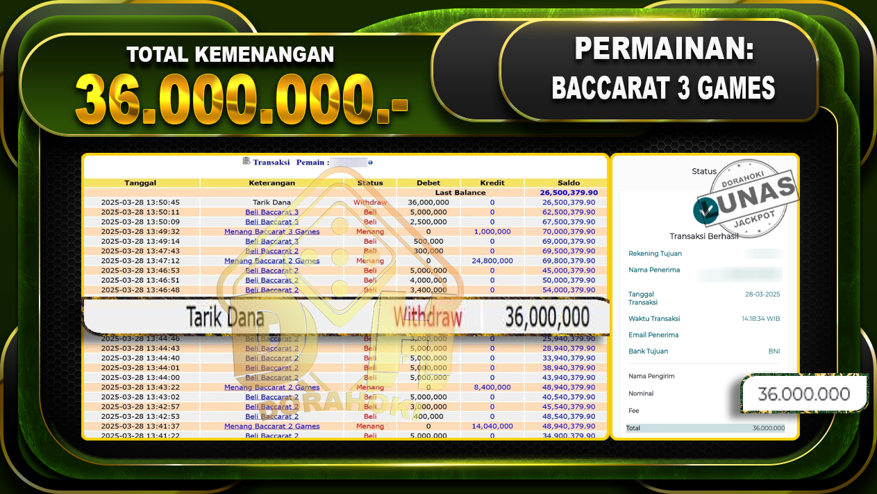 BACCARAT 2 GAMES – DORAHOKI 28 Maret 2025