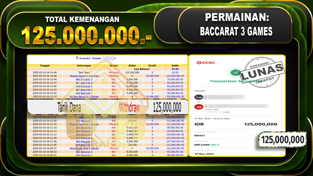 BACCARAT 3 GAMES – DORAHOKI 19 Maret 2025