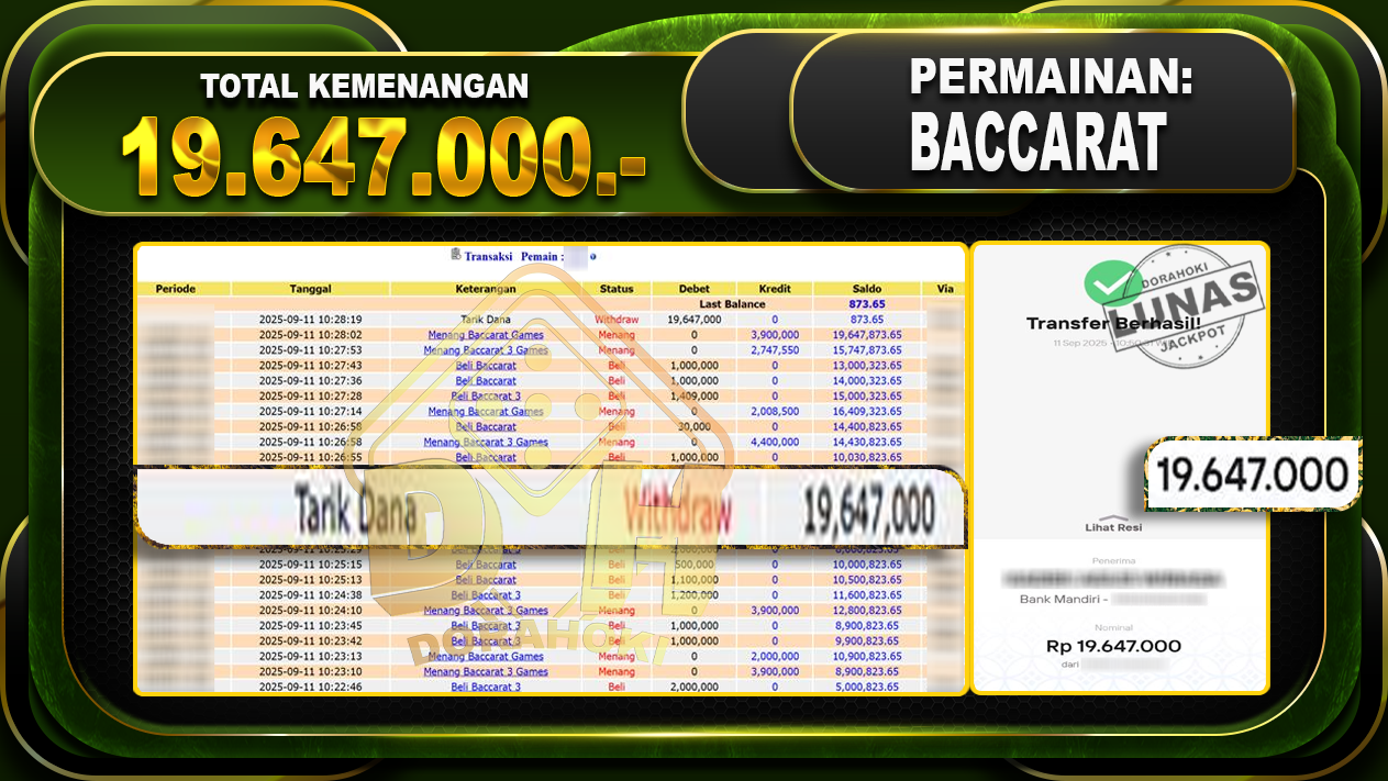 Bukti JP Baccarat – ucapkan selamat kepada user id Jixx atas kemenangan di Baccarat dengan total kemenangan Rp.19.647.000- . Yang pasti nya langsung LUNAS sesuai bukti ya bosku. Dorahoki nih bosku berapapun akan tetap kami bayar lunas ya bosku.