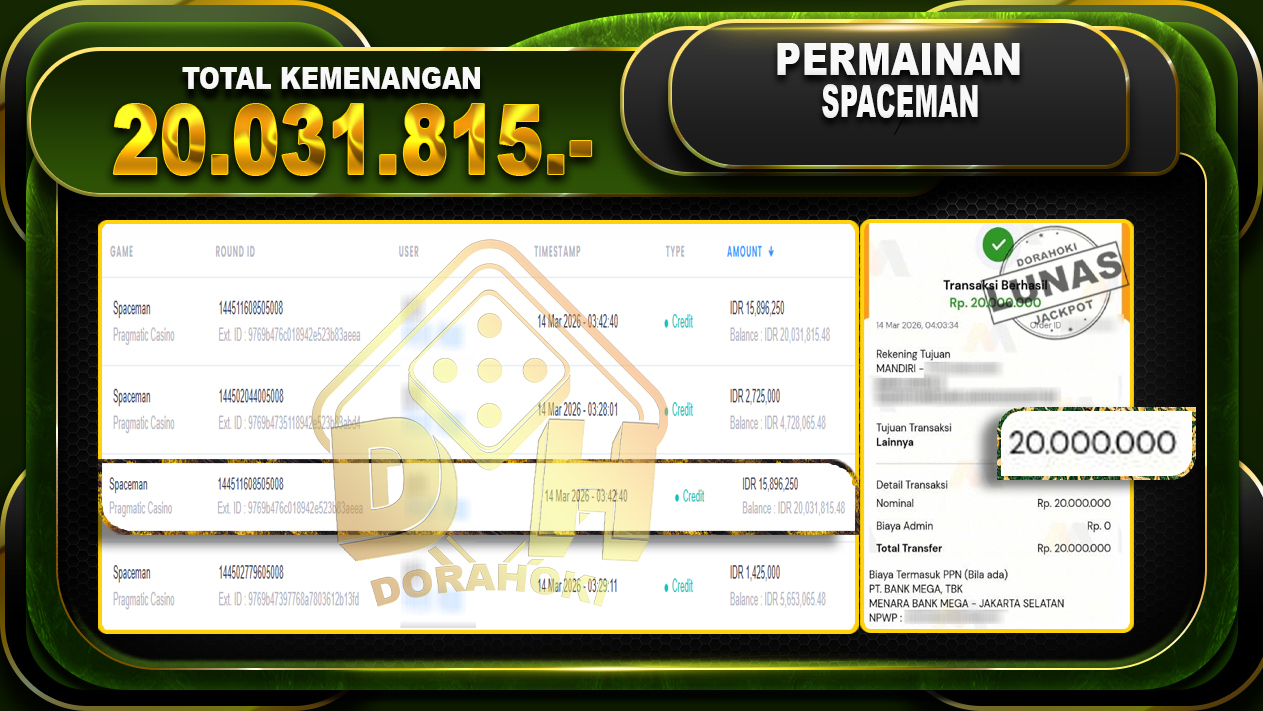 Bukti JP SPACEMAN – Selamat Kepada User ID : Balxxx atas kemenangan SPACEMAN Dengan Nominal Sebesar Rp.20.031.815,- . Yang pasti nya langsung LUNAS Sesuai Bukti.