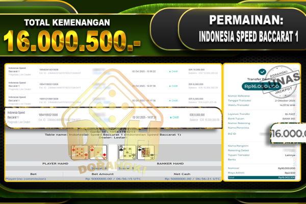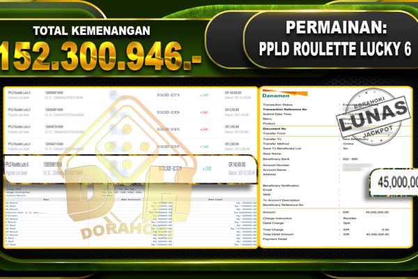 Bukti JP PPLD Roulette Lucky 6 – ucapkan selamat kepada user id suwxxxxx atas kemenangan di PPLD Roulette Lucky 6 dengan total kemenangan Rp.152.300.946,- Yang pasti nya langsung LUNAS sesuai bukti ya bosku. Dorahoki nih bosku berapapun akan tetap kami bayar lunas ya bosku.