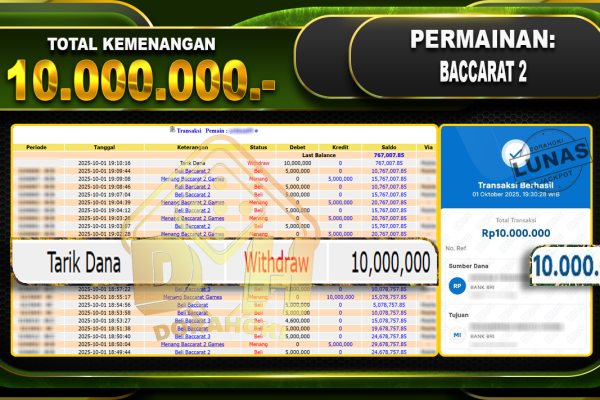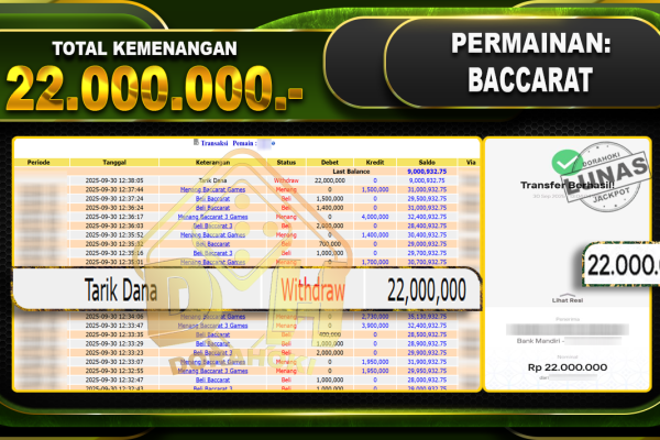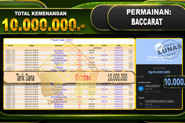 Bukti JP Indonesia Speed Baccarat 1 – ucapkan selamat kepada user id praxxxxxx atas kemenangan di Indonesia Speed Baccarat 1 dengan total kemenangan Rp.11.001.270,- Yang pasti nya langsung LUNAS sesuai bukti ya bosku. Dorahoki nih bosku berapapun akan tetap kami bayar lunas ya bosku