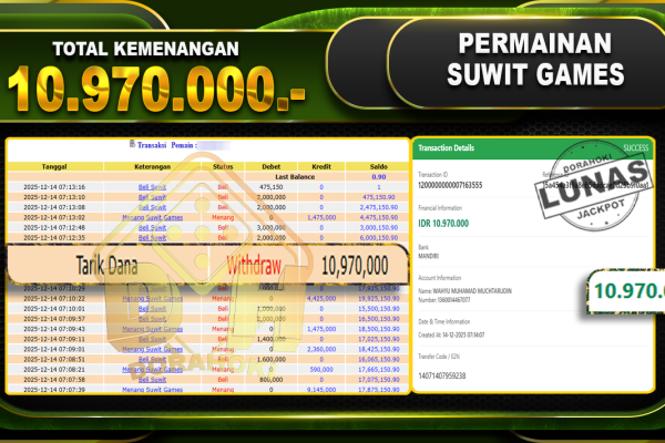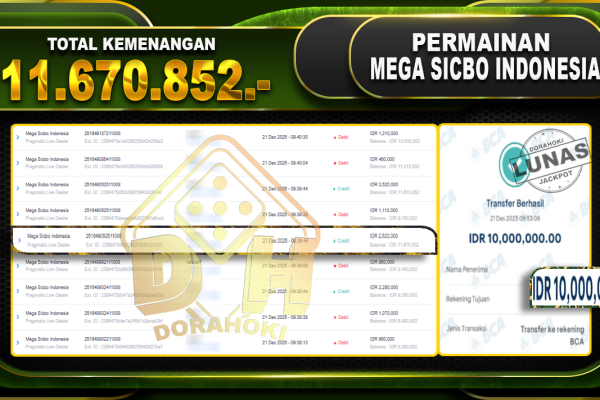 Bukti JP BACCARAT – ucapkan selamat kepada user id sagxxxx atas kemenangan di BACCARAT dengan total kemenangan Rp.10.000.000,- . Yang pasti nya langsung LUNAS sesuai bukti ya bosku. Dorahoki nih bosku berapapun akan tetap kami bayar lunas ya bosku.