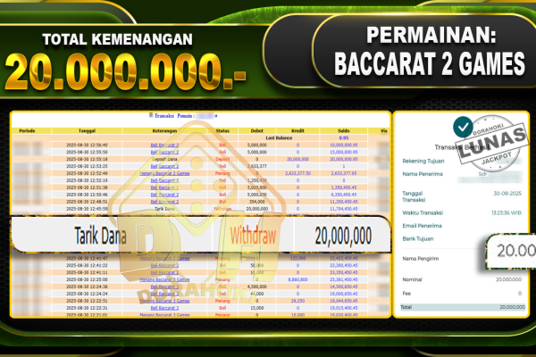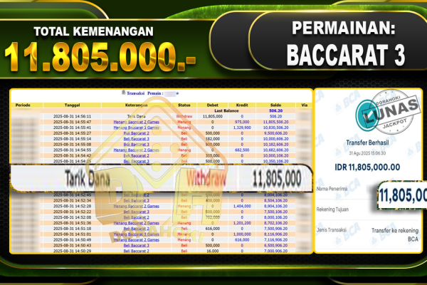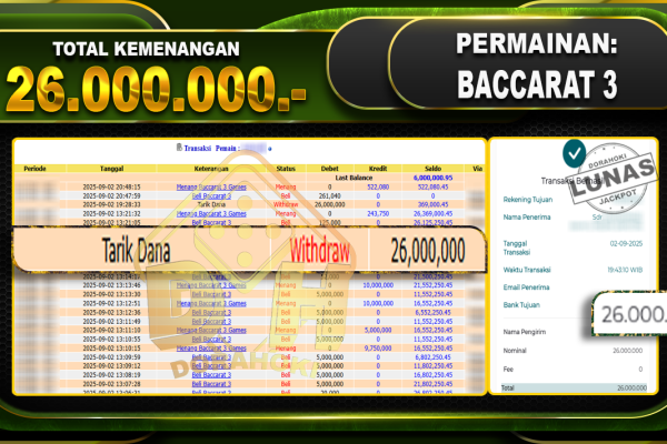 Bukti JP BACCARAT 3 GAMES – ucapkan selamat kepada user id AsuXXX atas kemenangan di BACCARAT 3 GAMES dengan total kemenangan Rp.17.753.000- . Yang pasti nya langsung LUNAS sesuai bukti ya bosku. Dorahoki nih bosku berapapun akan tetap kami bayar lunas ya bosku.