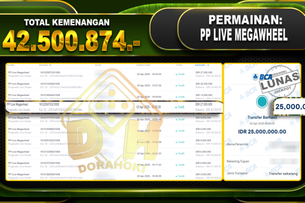 Bukti JP 24Dspin – ucapkan selamat kepada user id Jemxxx atas kemenangan di 24Dspin dengan total kemenangan Rp.20.600.000,- . Yang pasti nya langsung LUNAS sesuai bukti ya bosku. Dorahoki nih bosku berapapun akan tetap kami bayar lunas ya bosku. Kami mengucapkan Terima Kasih telah mempercayakan DORAHOKI sebagai Bandar Online pilihan dalam bermain judi online. Semoga bosku…