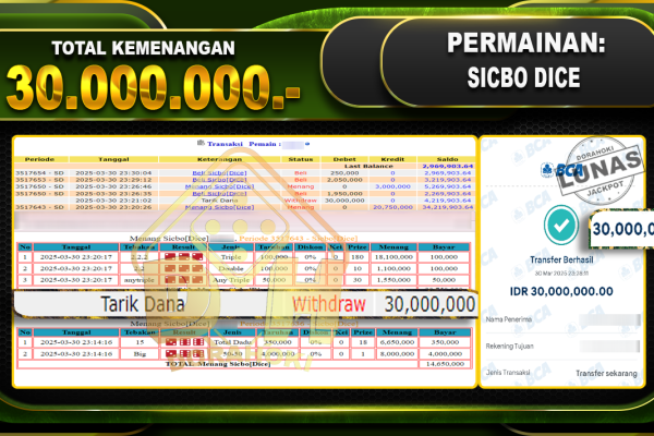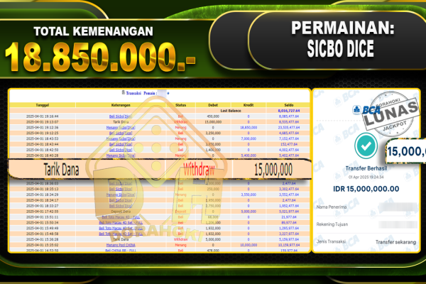 Bukti JP SICBO DICE – ucapkan selamat kepada user id Gapxxx atas kemenangan di SICBO DICE dengan total kemenangan Rp.18.850.000,- . Yang pasti nya langsung LUNAS sesuai bukti ya bosku. Dorahoki nih bosku berapapun akan tetap kami bayar lunas ya bosku. Kami mengucapkan Terima Kasih telah mempercayakan DORAHOKI sebagai Bandar Online pilihan dalam bermain judi online….