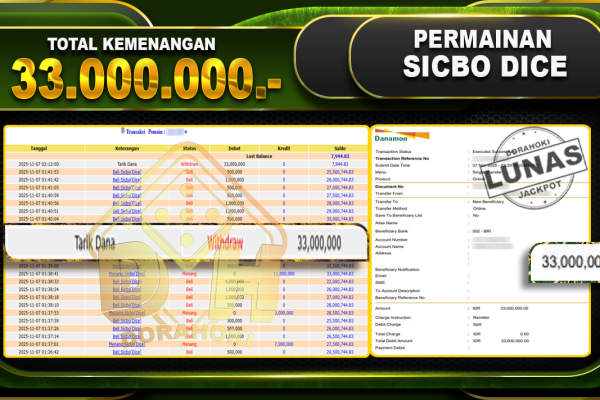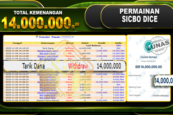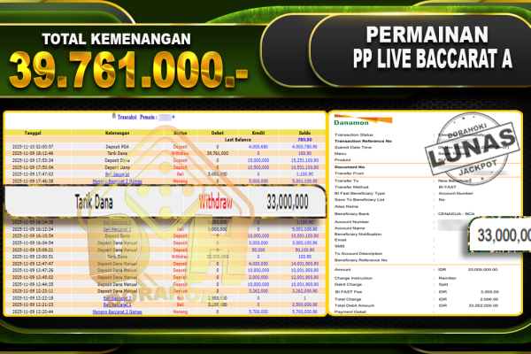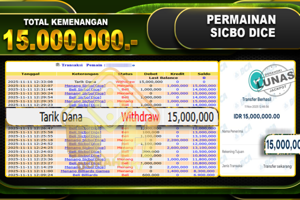 Bukti JP Indonesia Speed Baccarat 1 – ucapkan selamat kepada user id sinxxxxx atas kemenangan di Indonesia Speed Baccarat 1 dengan total kemenangan Rp.10.762,500,- Yang pasti nya langsung LUNAS sesuai bukti ya bosku. Dorahoki nih bosku berapapun akan tetap kami bayar lunas ya bosku
