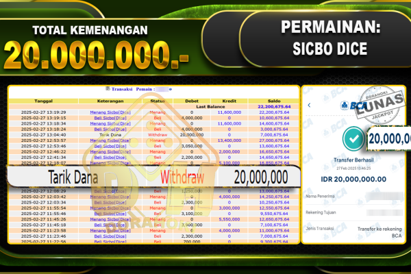 Bukti JP SICBO DICE – ucapkan selamat kepada user id Gapxxx atas kemenangan di SICBO DICE dengan total kemenangan Rp.20.000.000,- . Yang pasti nya langsung LUNAS sesuai bukti ya bosku. Dorahoki nih bosku berapapun akan tetap kami bayar lunas ya bosku. Kami mengucapkan Terima Kasih telah mempercayakan DORAHOKI sebagai Bandar Online pilihan dalam bermain judi online….