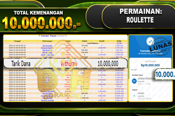 Bukti JP BACCARAT – ucapkan selamat kepada user id arkxxxxx atas kemenangan di BACCARAT dengan total kemenangan Rp.35.000.000,- . Yang pasti nya langsung LUNAS sesuai bukti ya bosku. Dorahoki nih bosku berapapun akan tetap kami bayar lunas ya bosku.