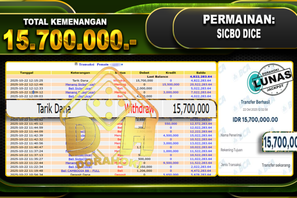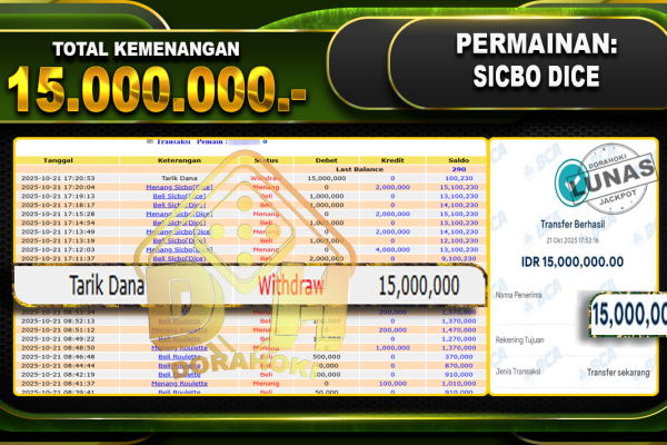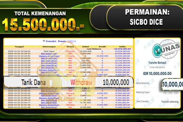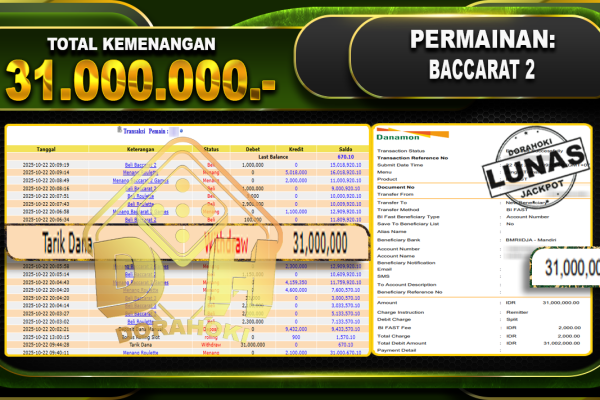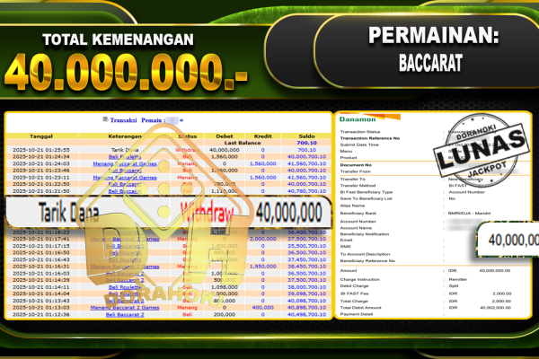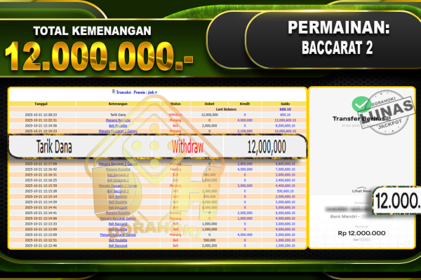 Bukti JP BACCARAT – ucapkan selamat kepada user id asuxxxx atas kemenangan di BACCARAT dengan total kemenangan Rp.10.950.000,- . Yang pasti nya langsung LUNAS sesuai bukti ya bosku. Dorahoki nih bosku berapapun akan tetap kami bayar lunas ya bosku.