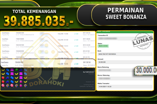 Sweet Spin Royal – Selamat Kepada User ID : Sukxxx atas kemenangan Sweet Spin Royal Dengan Nominal Sebesar Rp 41.761.156,- . Yang pasti nya langsung LUNAS Sesuai Bukti. Kemenangan Berapapun Situs DoraHoki Akan Membayar Lunas ya Kami mengucapkan Terima Kasih telah mempercayakan DORAHOKI sebagai Bandar Online pilihan dalam bermain judi online. Semoga bosku bisa tetap…