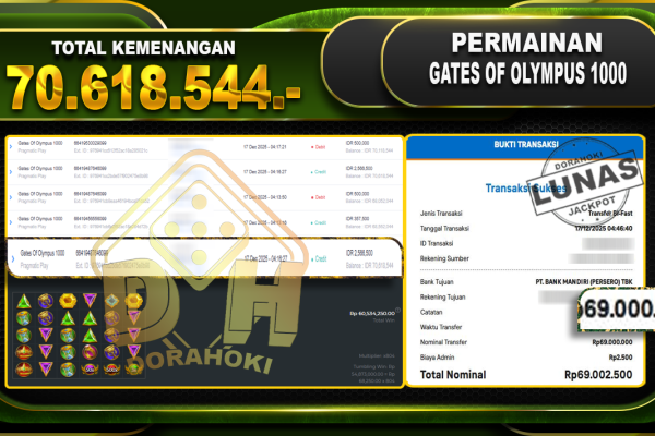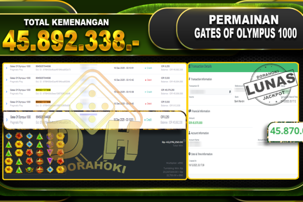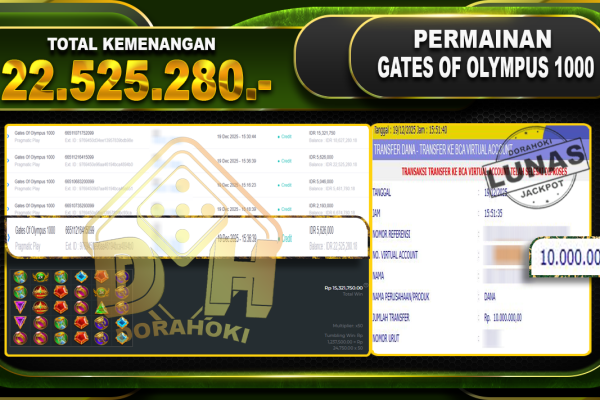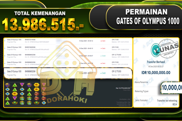 Bukti JP Gates Of Olympus 1000 – ucapkan selamat kepada user id adixxxxx atas kemenangan di Gates Of Olympus 1000 dengan total kemenangan Rp.22.525.280,- Yang pasti nya langsung LUNAS sesuai bukti ya bosku. Dorahoki nih bosku berapapun akan tetap kami bayar lunas ya bosku