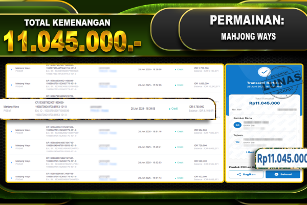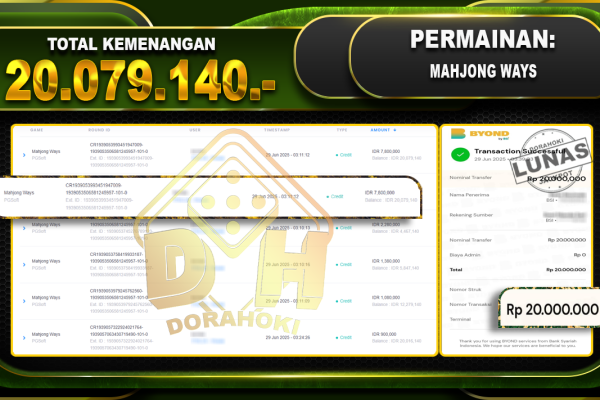 Bukti JP GATES OF OLYMPUS 1000 – ucapkan selamat kepada user id AISxxx atas kemenangan di GATES OF OLYMPUS 1000 dengan total kemenangan Rp.19.901.517,- . Yang pasti nya langsung LUNAS sesuai bukti ya bosku. Dorahoki nih bosku berapapun akan tetap kami bayar lunas ya bosku.