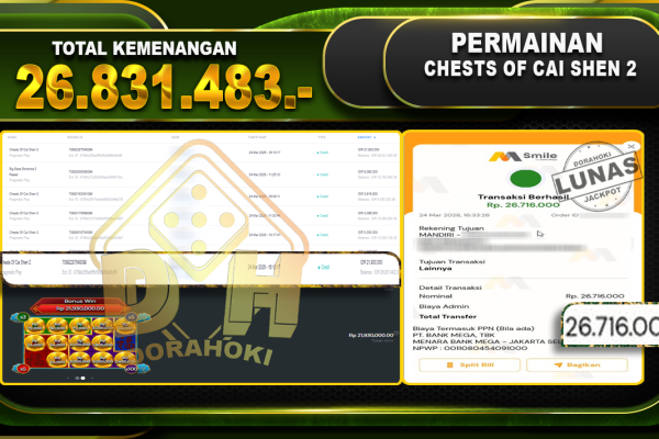 Bukti JP MAHJONG WINS 3 BLACK SCATTER – Selamat Kepada User ID : Bosxxx atas kemenangan MAHJONG WINS 3 BLACK SCATTER Dengan Nominal Sebesar Rp.12.944.724,- . Yang pasti nya langsung LUNAS Sesuai Bukti. Kemenangan Berapapun Situs DoraHoki Akan Membayar Lunas ya