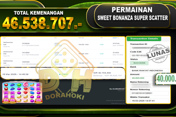 Bukti JP Gates Of Olympus 1000 – Selamat Kepada User ID : Wikxxx atas kemenangan Gates Of Olympus 1000 Dengan Nominal Sebesar Rp 15.439.487,- . Yang pasti nya langsung LUNAS Sesuai Bukti. Kemenangan Berapapun Situs DoraHoki Akan Membayar Lunas ya Kami mengucapkan Terima Kasih telah mempercayakan DORAHOKI sebagai Bandar Online pilihan dalam bermain judi online….