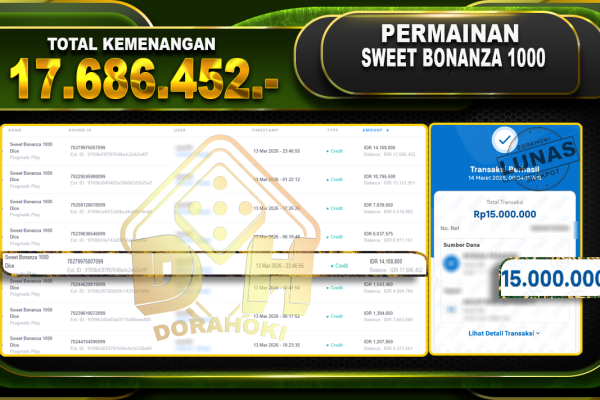 Bukti JP Wild Ape – ucapkan selamat kepada user id Broxxxx atas kemenangan di Wild Ape dengan total kemenangan Rp.15.000.000.-. Yang pasti nya langsung LUNAS sesuai bukti ya bosku.Kemenangan Berapapun Situs DoraHoki Akan Membayar Lunas ya
