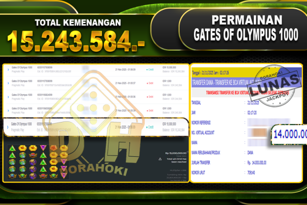Bukti JP Gates Of Olympus Super Scatter – ucapkan selamat kepada user id anixxxxx atas kemenangan di Gates Of Olympus Super Scatter dengan total kemenangan Rp.32.522.843,- Yang pasti nya langsung LUNAS sesuai bukti ya bosku. Dorahoki nih bosku berapapun akan tetap kami bayar lunas ya bosku