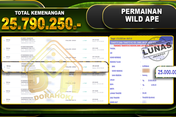 Bukti JP Wild Ape – ucapkan selamat kepada user id kamxxxxx atas kemenangan di Wild Ape dengan total kemenangan Rp.25.790.250- . Yang pasti nya langsung LUNAS sesuai bukti ya bosku. Dorahoki nih bosku berapapun akan tetap kami bayar lunas ya bosku.