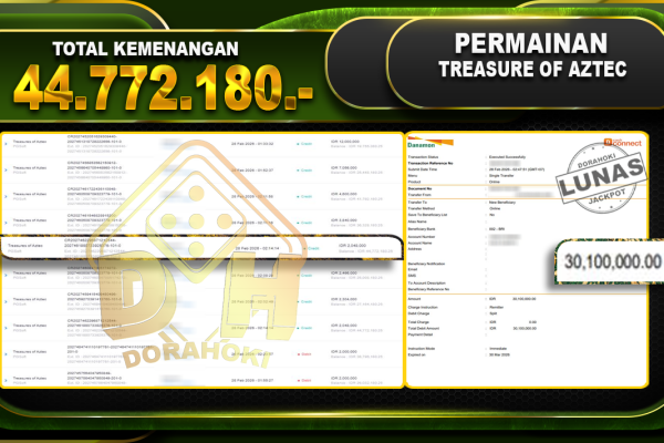 Bukti JP GANESHA TREASURE – ucapkan selamat kepada user id Usaxxx atas kemenangan di GANESHA TREASURE dengan total kemenangan Rp.19.355.593,- . Yang pasti nya langsung LUNAS Sesuai Bukti. Kemenangan Berapapun Situs DoraHoki Akan Membayar Lunas ya Kami mengucapkan Terima Kasih telah mempercayakan DORAHOKI sebagai Bandar Online pilihan dalam bermain judi online. Semoga bosku bisa tetap…