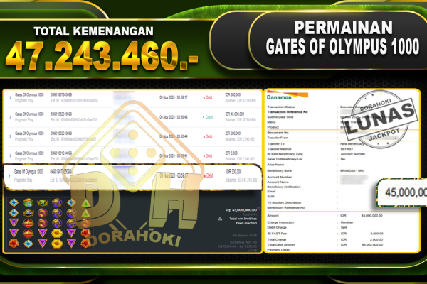Bukti JP Gates Of Olympus 1000 – ucapkan selamat kepada user id blaxxxxx atas kemenangan di Gates Of Olympus 1000 dengan total kemenangan Rp.47.243.460,- Yang pasti nya langsung LUNAS sesuai bukti ya bosku. Dorahoki nih bosku berapapun akan tetap kami bayar lunas ya bosku
