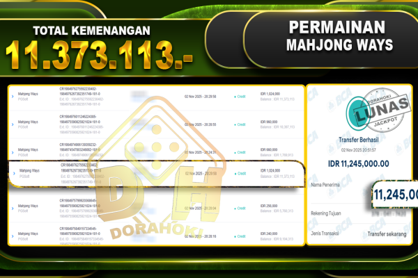 Bukti JP Mahjong Ways 2 – ucapkan selamat kepada user id dorxxxxx atas kemenangan di Mahjong Ways 2 dengan total kemenangan Rp.11.373.113,- Yang pasti nya langsung LUNAS sesuai bukti ya bosku. Dorahoki nih bosku berapapun akan tetap kami bayar lunas ya bosku