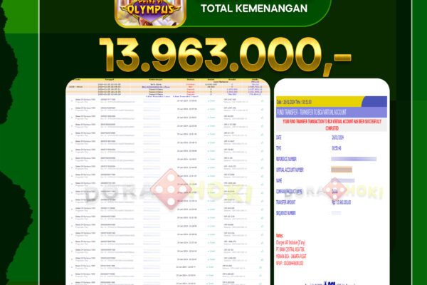 Bukti JP Gates Of Olympus 1000 – ucapkan selamat kepada user id Findxxx atas kemenangan di Gates Of Olympus 1000 dengan total kemenangan Rp.13,963,000,- . Yang pasti nya langsung LUNAS sesuai bukti ya bosku. Dorahoki nih bosku berapapun akan tetap kami bayar lunas ya bosku. Kami mengucapkan Terima Kasih telah mempercayakan DORAHOKI sebagai Bandar Online pilihan…