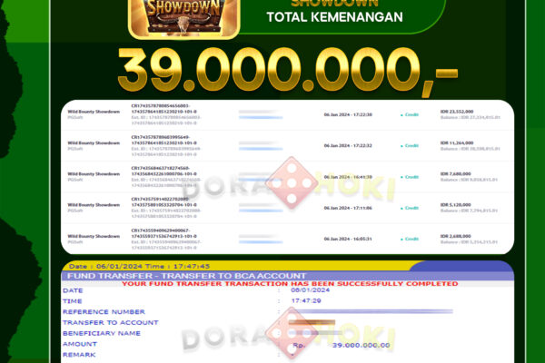 Bukti JP Wild Bounty Showdown – ucapkan selamat kepada user id Afrijxxx atas kemenangan di Wild Bounty Showdown dengan total kemenangan Rp.39,000,000,- . Yang pasti nya langsung LUNAS sesuai bukti ya bosku. Dorahoki nih bosku berapapun akan tetap kami bayar lunas ya bosku. Kami mengucapkan Terima Kasih telah mempercayakan DORAHOKI sebagai Bandar Online pilihan dalam bermain judi online….
