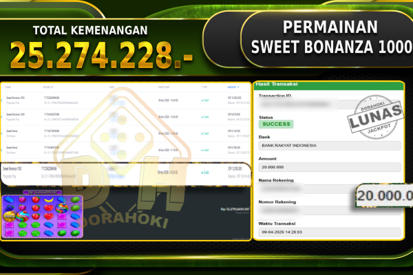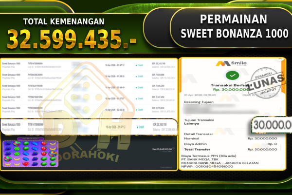 Bukti JP Sweet Bonanza 1000 – Selamat Kepada User ID : Firxxx atas kemenangan Sweet Bonanza 1000 Dengan Nominal Sebesar Rp.32.599.435,- Yang pasti nya langsung LUNAS Sesuai Bukti. Kemenangan Berapapun Situs DoraHoki Akan Membayar Lunas ya