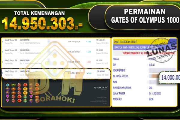Bukti JP Gates Of Olympus 1000 – ucapkan selamat kepada user id makxxxx atas kemenangan di Gates Of Olympus 1000 dengan total kemenangan Rp.12,602,219,- Yang pasti nya langsung LUNAS sesuai bukti ya bosku. Dorahoki nih bosku berapapun akan tetap kami bayar lunas ya bosku