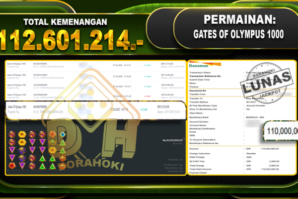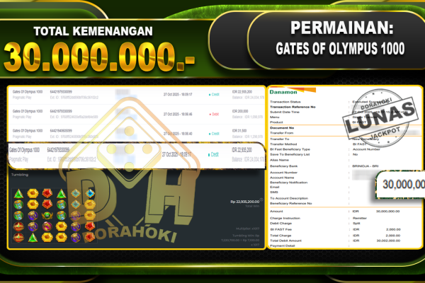 Bukti JP Gates Of Olympus 1000 – ucapkan selamat kepada user id natxxxxx atas kemenangan di Gates Of Olympus 1000 dengan total kemenangan Rp.30,000,000,- Yang pasti nya langsung LUNAS sesuai bukti ya bosku. Dorahoki nih bosku berapapun akan tetap kami bayar lunas ya bosku