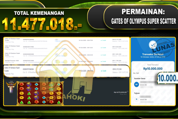 Bukti JP Wild Bounty showdown – ucapkan selamat kepada user id beexxxxx atas kemenangan di Wild Bounty showdown dengan total kemenangan Rp.10.150.000,- Yang pasti nya langsung LUNAS sesuai bukti ya bosku. Dorahoki nih bosku berapapun akan tetap kami bayar lunas ya bosku
