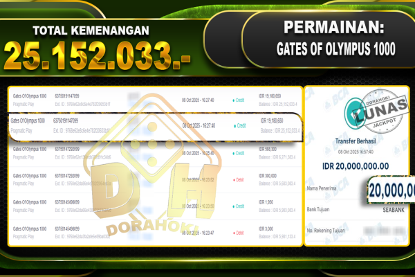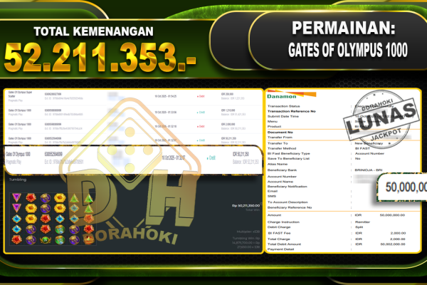 Bukti JP Gates Of Olympus 1000 – ucapkan selamat kepada user id isurxxxxxx atas kemenangan di Gates Of Olympus 1000 dengan total kemenangan Rp.52,211.353,- Yang pasti nya langsung LUNAS sesuai bukti ya bosku. Dorahoki nih bosku berapapun akan tetap kami bayar lunas ya bosku