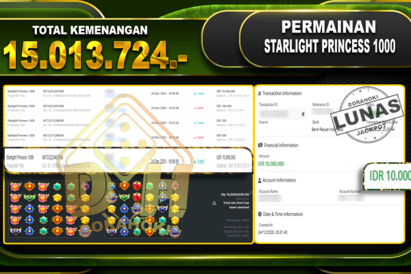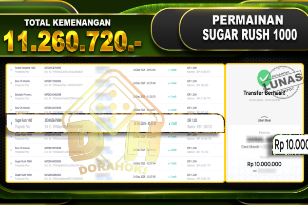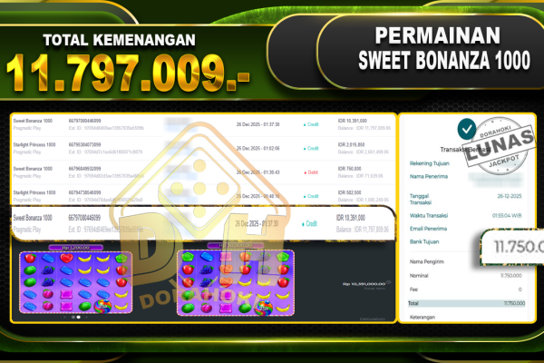Bukti JP Sweet Bonanza 1000 – ucapkan selamat kepada user id nhixxxxx atas kemenangan di Sweet Bonanza 1000 dengan total kemenangan Rp.11.797.009,- Yang pasti nya langsung LUNAS sesuai bukti ya bosku. Dorahoki nih bosku berapapun akan tetap kami bayar lunas ya bosku.