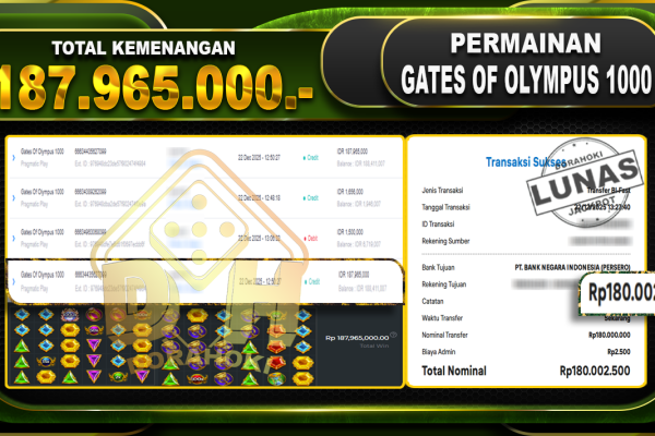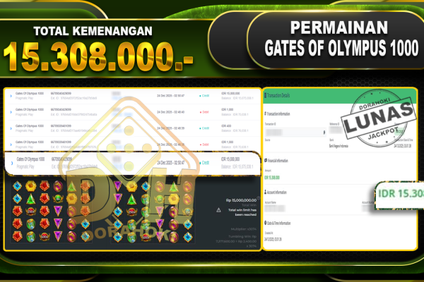 Bukti JP Gates Of Olympus 1000 – ucapkan selamat kepada user id tolxxxxx atas kemenangan di Gates Of Olympus 1000 dengan total kemenangan Rp.15.308.000,- Yang pasti nya langsung LUNAS sesuai bukti ya bosku. Dorahoki nih bosku berapapun akan tetap kami bayar lunas ya bosku