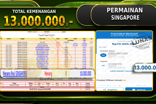 Bukti JP TOGEL SYDNEY – Selamat Kepada User ID : Wawxxx atas kemenangan TOGEL SYDNEY Dengan Nominal Sebesar Rp 13.200.000,- . Yang pasti nya langsung LUNAS Sesuai Bukti. Kemenangan Berapapun Situs DoraHoki Akan Membayar Lunas ya Kami mengucapkan Terima Kasih telah mempercayakan DORAHOKI sebagai Bandar Online pilihan dalam bermain judi online. Semoga bosku bisa tetap…