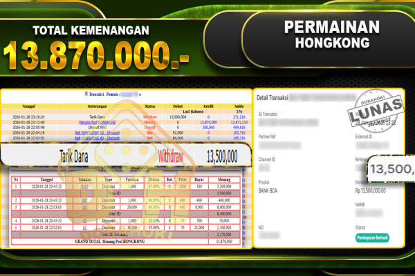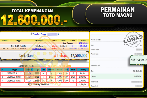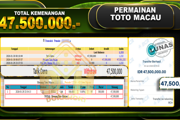Bukti JP TOGEL TOTO MACAU – Selamat Kepada User ID : hadxxx atas kemenangan TOGEL TOTO MACAU Dengan Nominal Sebesar Rp 52.225.000,- . Yang pasti nya langsung LUNAS Sesuai Bukti. Kemenangan Berapapun Situs DoraHoki Akan Membayar Lunas yah Kami mengucapkan Terima Kasih telah mempercayakan DORAHOKI sebagai Bandar Online pilihan dalam bermain judi online. Semoga bosku bisa…